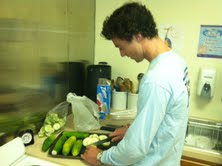 Meanwhile, our some of our regular volunteers, Jordan Rivera and Danielle Marquette, helped to slice and dice some tomatoes from the LCG!
