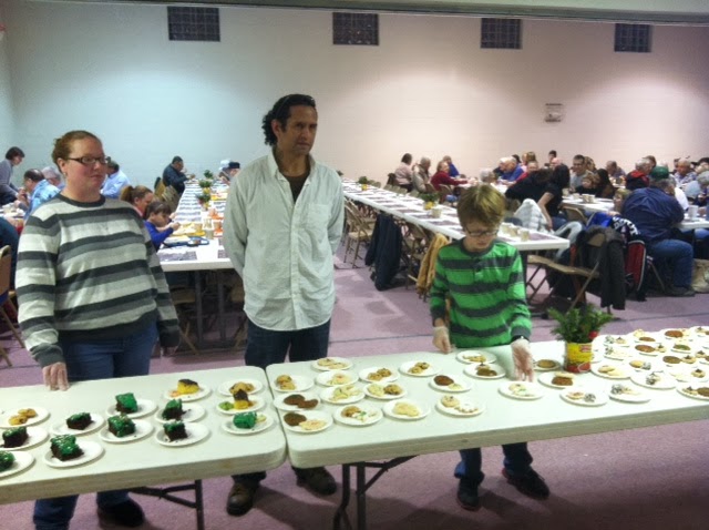 By the time dinner was ready to serve, there were 68 people ready and waiting, a pretty good turnout on a day with such nasty weather! We had a handful of volunteers from Bucknell and St. Paul's to serve dinner. As a surprise dessert, we had Mr. Sticky's Sticky Buns from a Bucknell Brigade fundraiser!