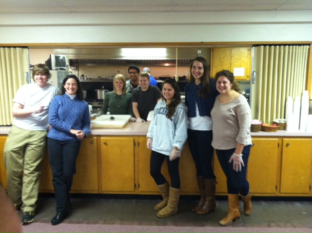 This week, Carly had her hands full with volunteers from Kappa Alpha Theta Sorority and the Bucknell Brigade, eager to help anyway they could. Without a moment's hesitation, Carly assigned each volunteer a job and the serving process was underway! Pay special attention to the way she actively delegates tasks among the volunteers, keeping things running smoothly (as pictured below). Only a skilled student coordinator like the girl in the yellow scarf could keep things moving so efficiently.