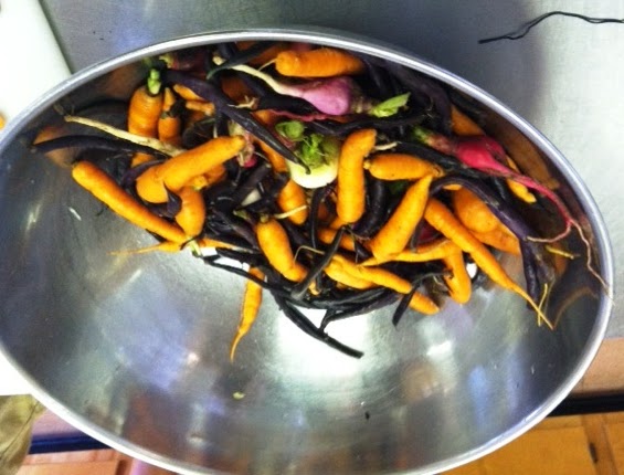 Tonight, we had spaghetti squash with our marinara sauce instead of pasta. This was something new all around, new for the patrons and new for us, as cooks. Once baked the squash becomes tender for shredding, and then you have a yummy alternative to pasta!